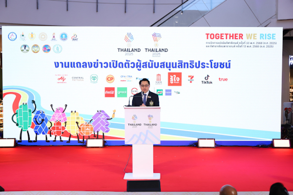 “ความสำเร็จครั้งนี้จะเกิดขึ้นไม่ได้หากปราศจากความร่วมมือจากทุกภาคส่วน โดยเฉพาะภาคเอกชนกว่า 20 องค์กรที่เข้ามามีบทบาทสำคัญ ทั้งด้านงบประมาณ ทรัพยากร และนวัตกรรม การเปิดตัวผู้สนับสนุนในวันนี้จึงไม่ใช่เพียงกิจกรรมเชิงสัญลักษณ์ แต่คือพลังแห่งความร่วมมือ ความเชื่อมั่น และความภาคภูมิใจร่วมกันของคนไทยและประชาชนในอาเซียน พร้อมกันนี้จึงขอเชิญชวนหน่วยงานต่างๆ ทุกภาค และชาวไทยทุกคน ส่วนร่วมกันเป็นเจ้าภาพที่ดี ต้อนรับนักกีฬาจากทั่วภูมิภาคด้วยรอยยิ้มและไมตรีจิต เพื่อยืนยันว่า “TOGETHER WE RISE” เมื่อเรารวมพลัง เราสามารถสร้างความสำเร็จที่ยิ่งใหญ่ร่วมกันได้เสมอ” ผู้ว่าการ กกท. กล่าวย้ำ