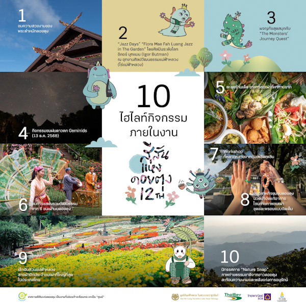 เทศกาล “สีสันแห่งดอยตุง ครั้งที่ 12”The Monsters’ Journey “Blooming Inspiration”ผจญภัยไปกับเหล่าผู้พิทักษ์ป่าดอยตุง สานต่อแรงบันดาลใจจากฟากฟ้า