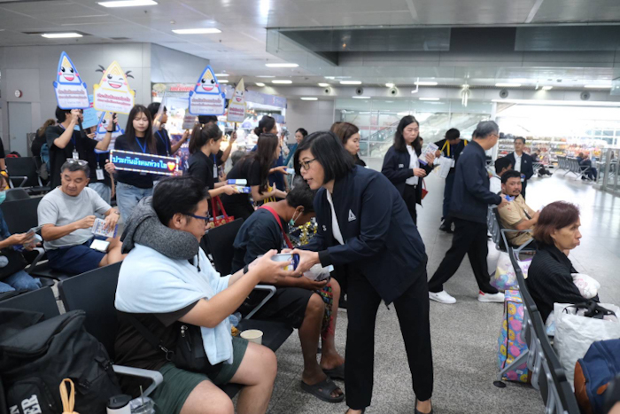 นางสาวกาญจนา พูลแก้ว เลขาธิการสำนักงานประกันสังคม พร้อม นางนงค์ลักษณ์ กอวรกุล รองเลขาธิการสำนักงานประกันสังคม นายพูนทรัพย์ ศรีไพบูลย์ ผู้ตรวจราชการกรม สำนักงานประกันสังคม นางวันทนา ณัฐพูลวัฒน์ ผู้ตรวจราชการกรม สำนักงานประกันสังคม ผู้บริหารสำนักงานประกันสังคม และเจ้าหน้าที่ เข้าร่วมกิจกรรม “สปส. ห่วงใย ลูกจ้าง ผู้ประกันตน เดินทางปลอดภัยทุกเส้นทาง” ช่วงเทศกาลปีใหม่ และมอบของที่ระลึกให้แก่ผู้ประกันตนที่กำลังเดินทางกลับภูมิลำเนา